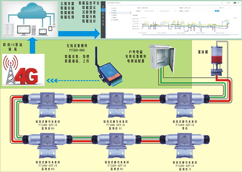 液壓式靜力水準(zhǔn)儀在沉降監(jiān)控系統(tǒng)應(yīng)用液壓式差壓式靜力水準(zhǔn)儀沉降監(jiān)測系統(tǒng)應(yīng)用于地基、基坑、隧道、軌道、高鐵、公路、山體、邊坡、大壩、電站、基塔、大型儲灌等基礎(chǔ)設(shè)施沉降長期監(jiān)測場合。